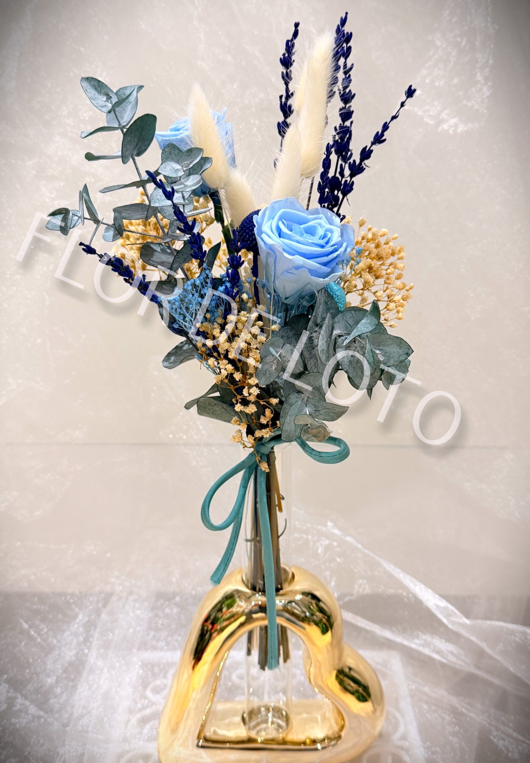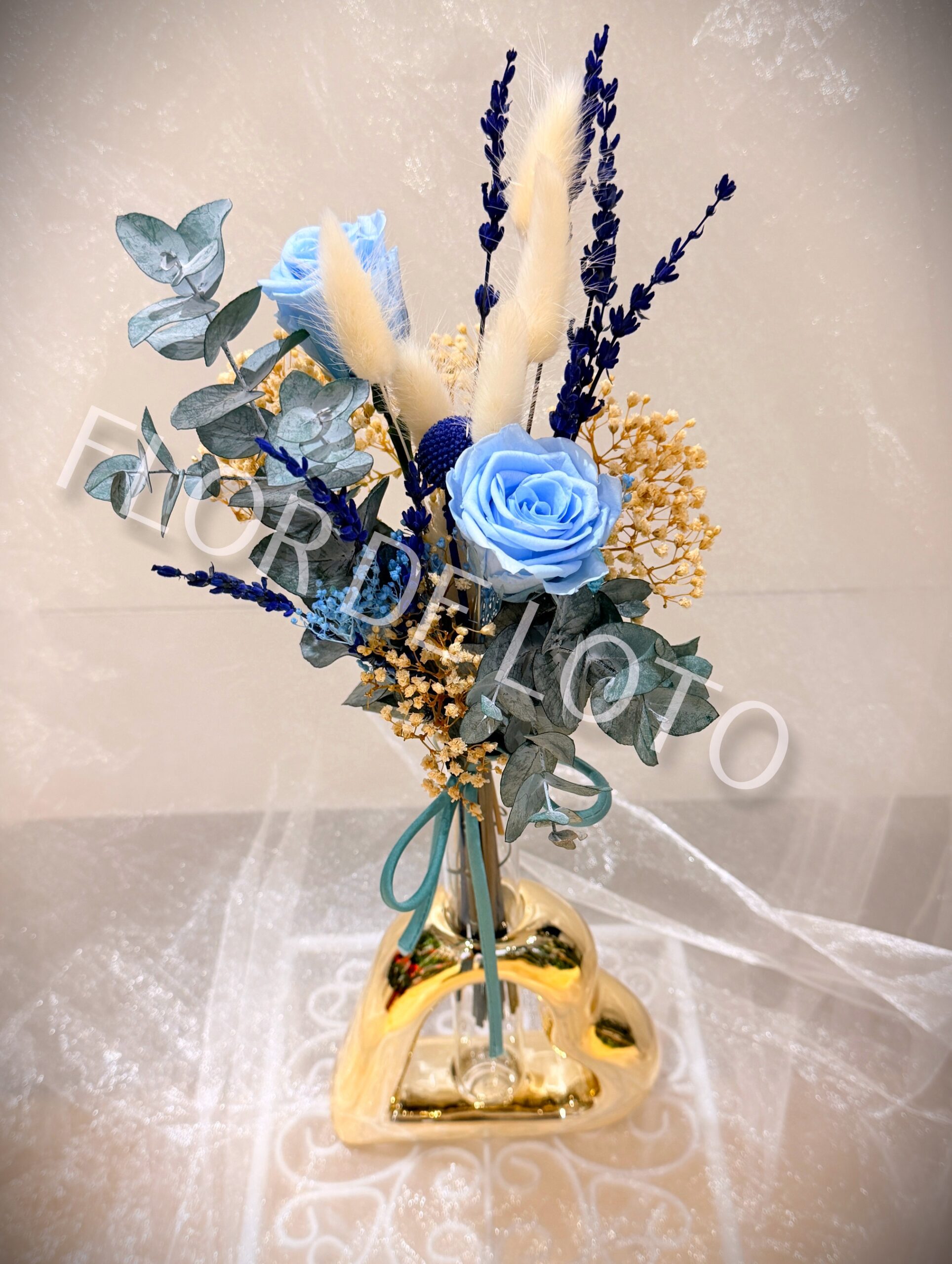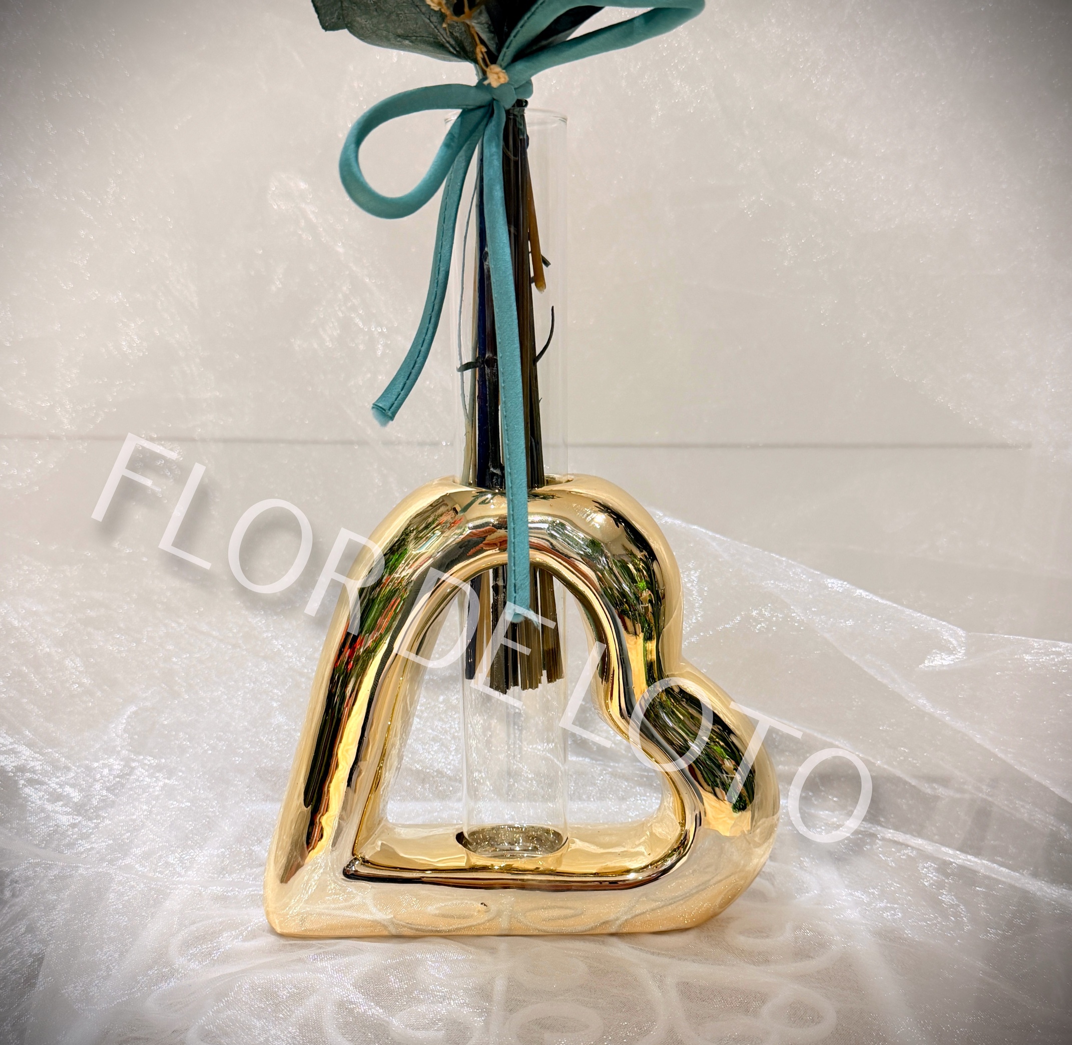 Corazón Cerámica con Jarrón y Flor Preservada.