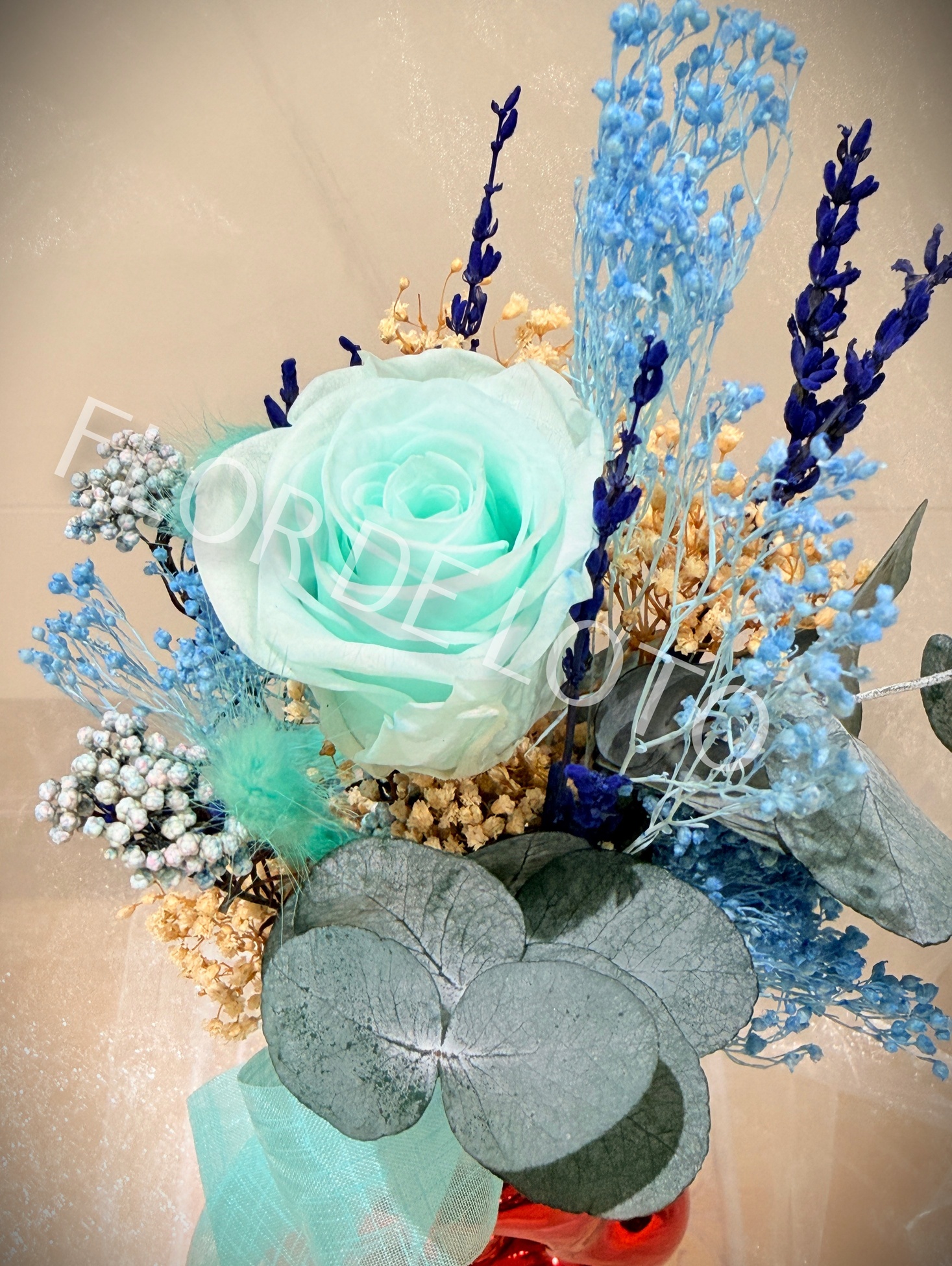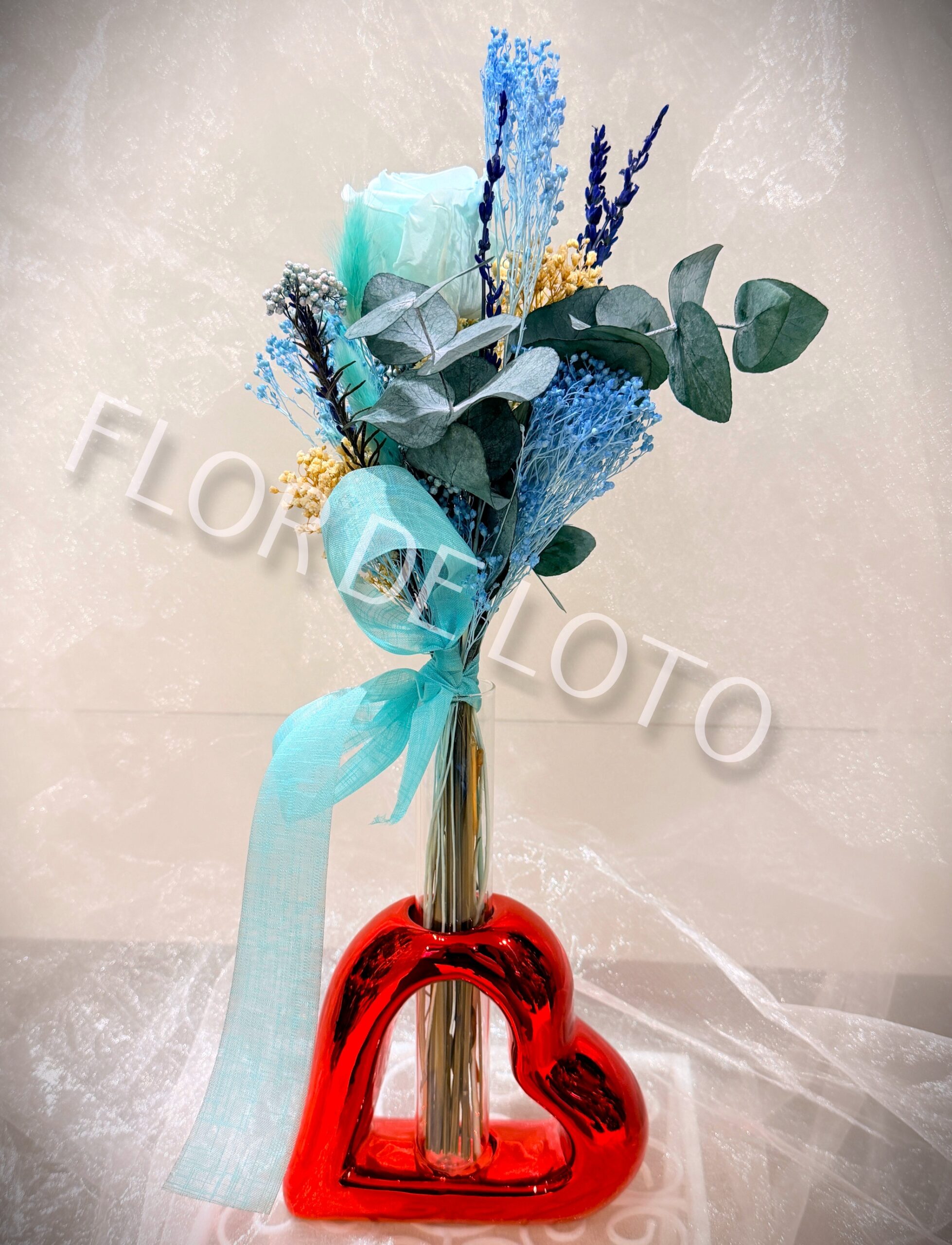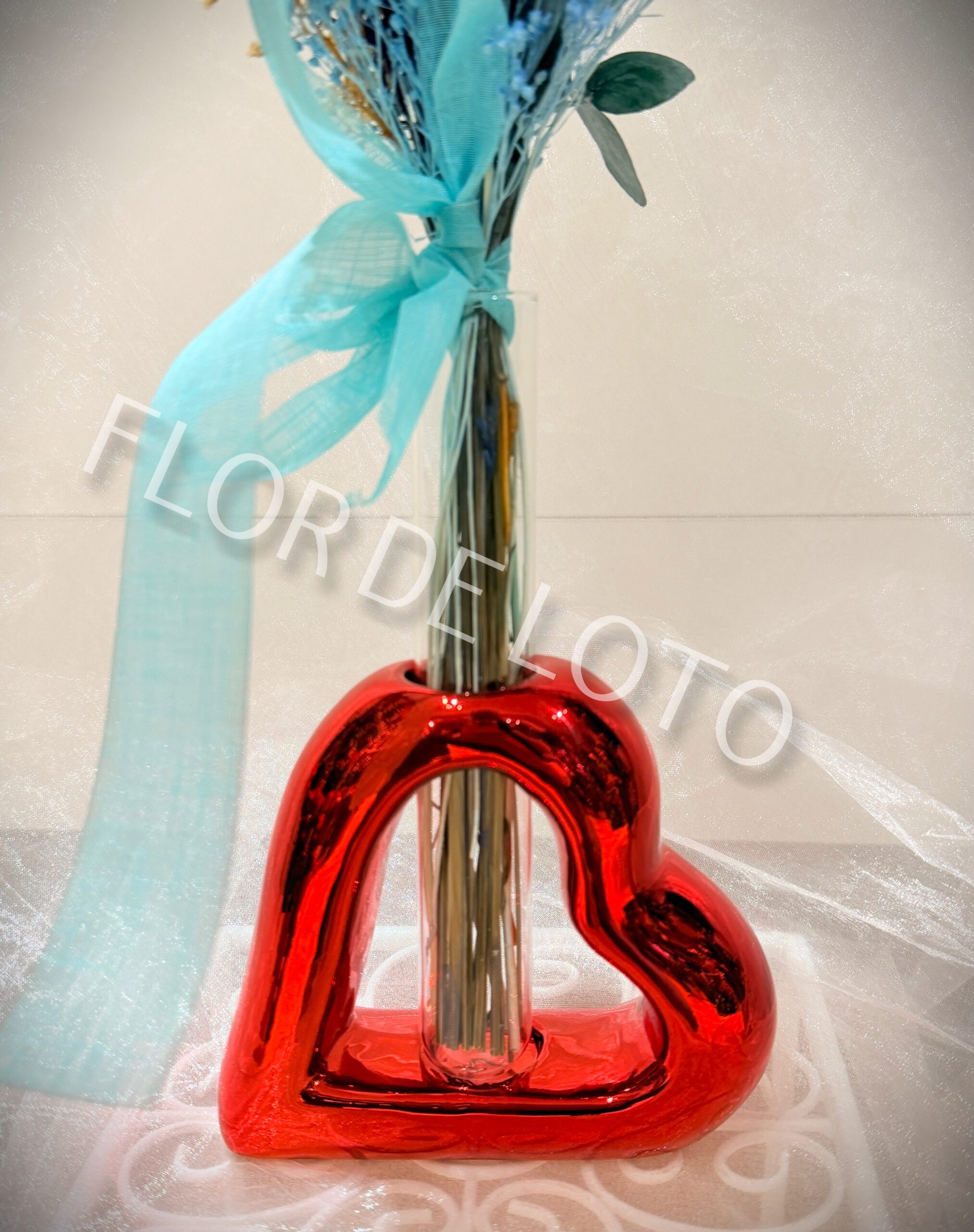 Corazón Cerámica con Jarrón y Flor Preservada.