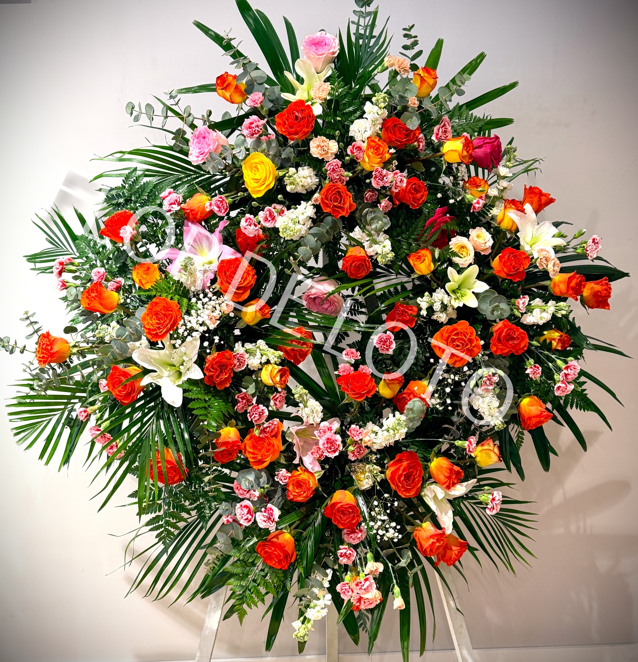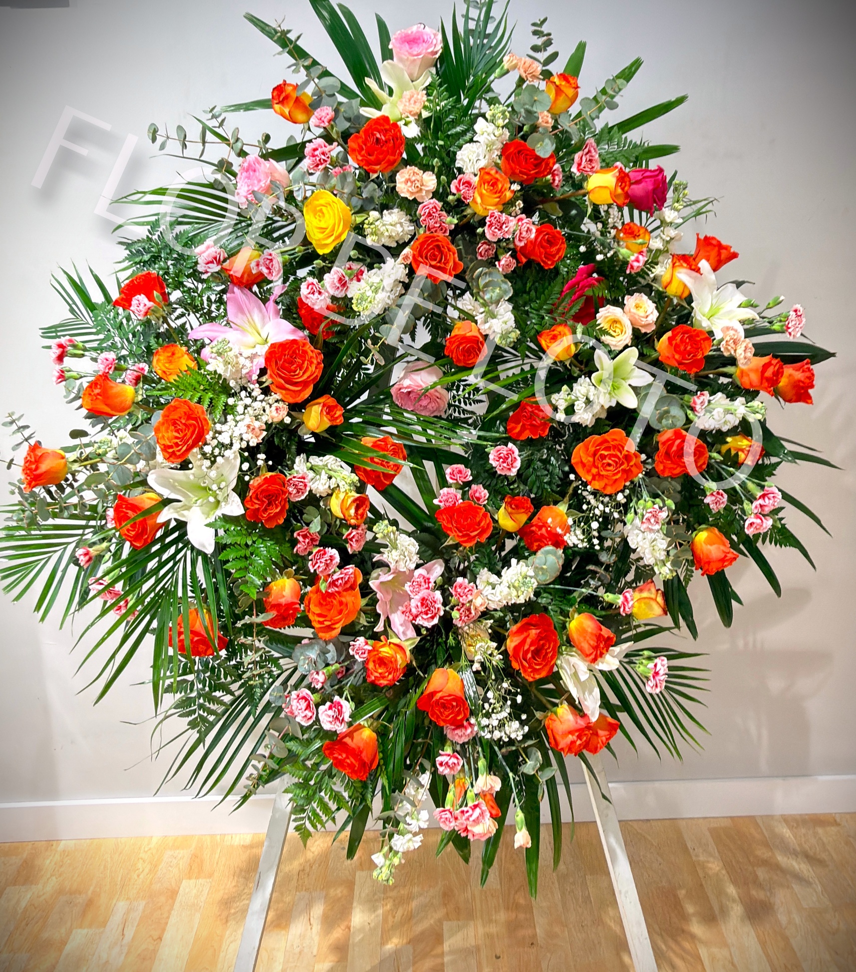 Corona Fúnebre Cuatro Cabezales, diámetro aproximado 130cm.